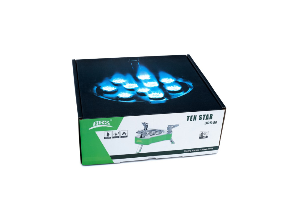 Опис Газовий пальник BRS-80 Газовий пальник BRS-80 служить для полегшення процесу приготування їжі за умов походу. Це оптимальне рішення для кулінарії на свіжому повітрі. Десять зручних конфорок. Сильна вогнева міць та рівномірне нагрівання. Втричі перевищує потужності звичайні побутові газові плити.