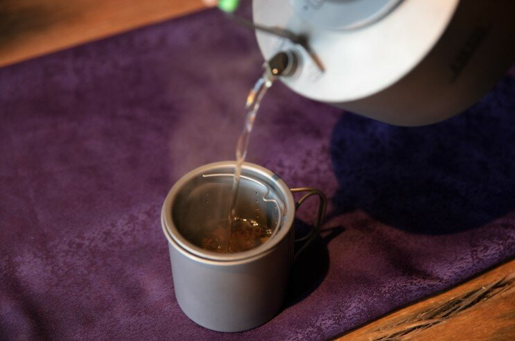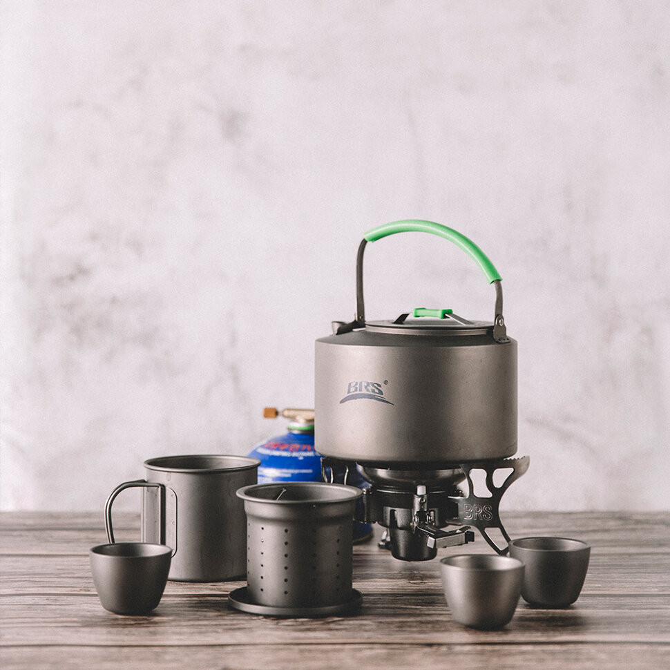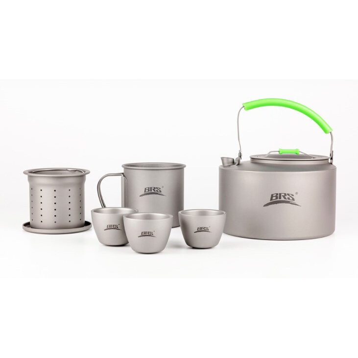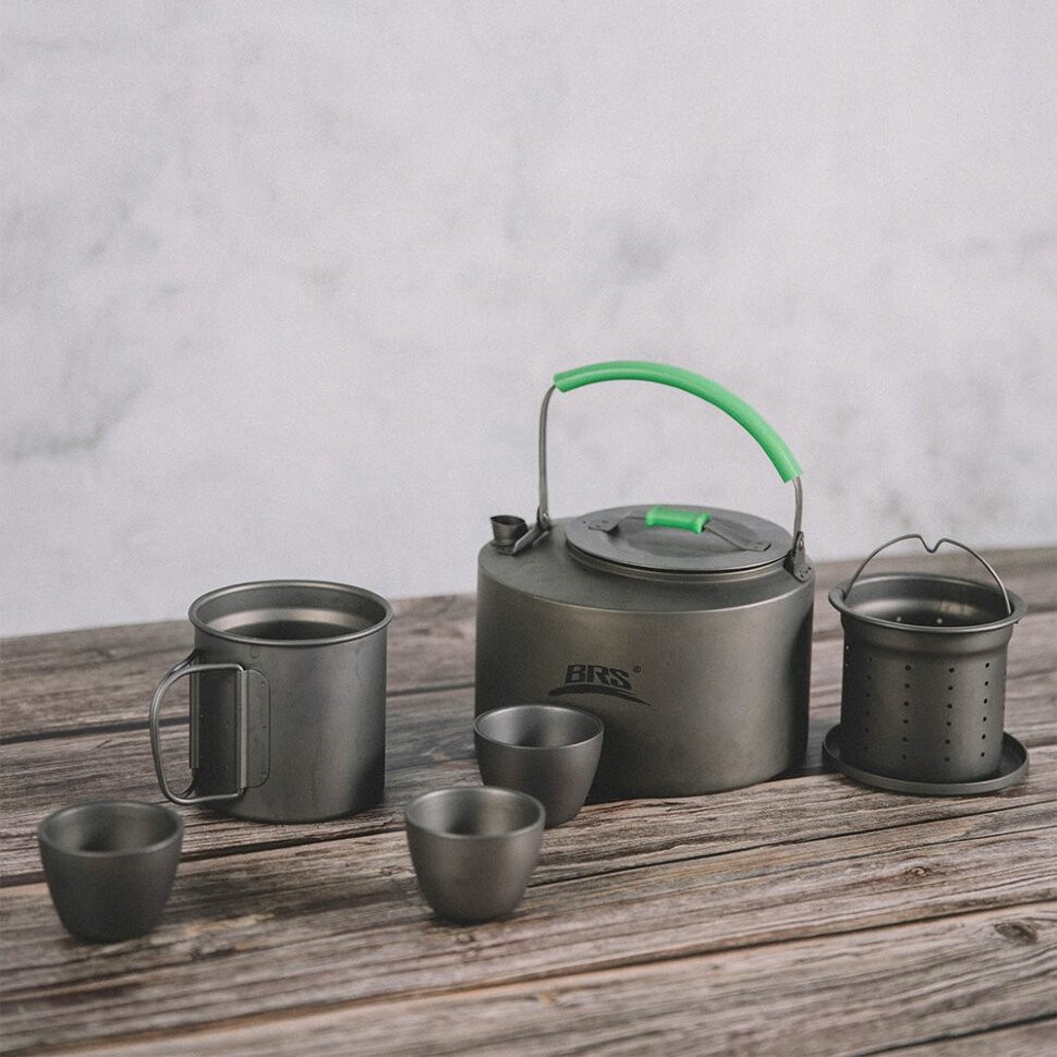 Набір посуду складається з чайника, кухля, трьох чашок, а також ситечка для чаю. Всі предмети виготовлені з титану, це міцний та стійкий до зношування посуд, розрахований на застосування в активному відпочинку. Всі вироби компактно складаються одне в інше, тому переносити їх буде досить легко. Це дуже зручно в туризмі та інших видах активного проведення часу. Посуд можна класти в спеціальний чохол і в такому вигляді його транспортувати.
