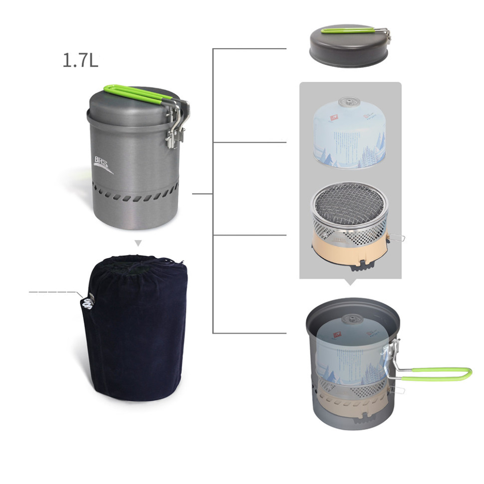 Набір BRS-TS19B призначений для приготування їжі у польових умовах. Посуд розроблений з акцентом на компактність, ефективність нагрівання та простоту у догляді, щоб ви могли насолоджуватися улюбленими стравами, де б не знаходились.
