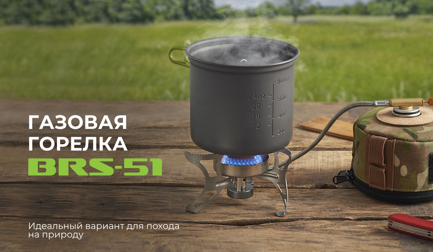 Описание газовой горелки BRS-51: Газовая горелка BRS-51 предназначена для кулинарного процесса на свежем воздухе. Она оптимальна в туризме и в различных видах активного отдыха. Гарантирует быстроту и удобство приготовления еды на природе. Компактная и лёгкая, что очень удобно для пользователя.
