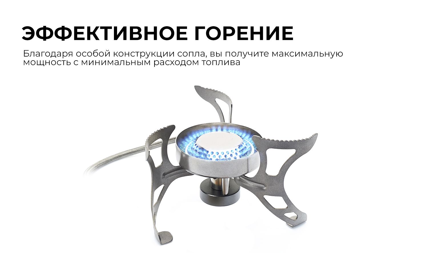 Газовая горелка для туризма, активного отдыха. Работает на пропане. Мощность равна 3240 ваттам. Компактная, имеет небольшой вес. Горелка даёт возможность быстро и легко заниматься кулинарией на природе. Вес достигает 185 грамм.