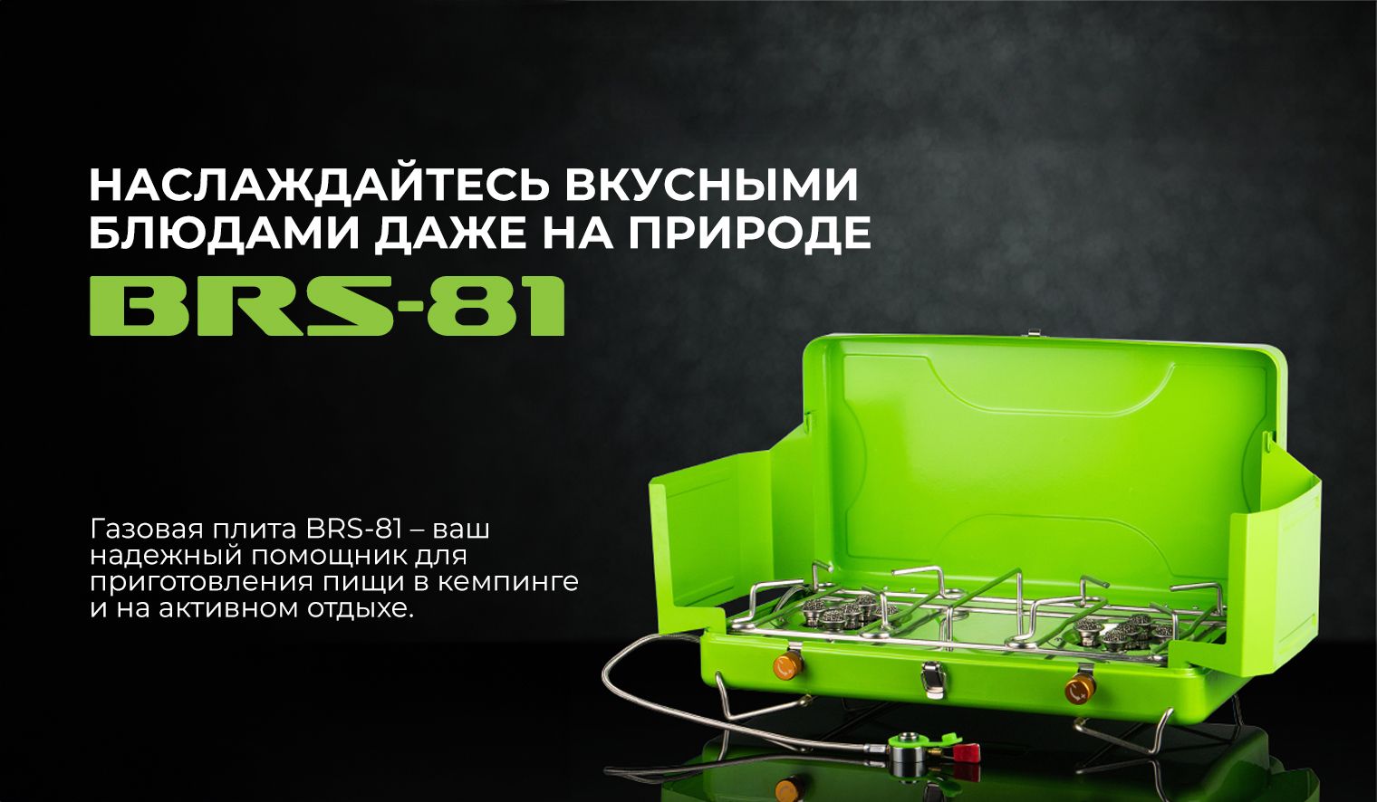 Описание газовой плиты BRS-81: Компактная плита для приготовления еды BRS-81 работает на бутане. Способ поджига – внешний источник. Здесь предусмотрены две конфорки, на которые можете поместить, например, две кастрюли. Удобно применять, и можно быстро готовить пищу в условиях пребывания на природе. Пригодится вам в туризме и для разных видов активного отдыха. Даёт ровное и мощное пламя, обеспечивая эффективный и быстрый подогрев.