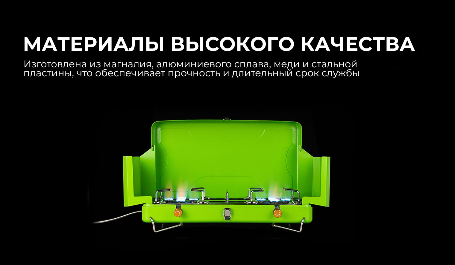 Характеристики: газовая плита для кулинарии на природе; работает на бутане; в составе: магналий, сплав алюминия, медь, стальная пластина; размеры составляют 512*300*285 миллиметров; в сложенном виде габариты: 424*250*90 миллиметров; вес достигает трёх килограмм. array:1 [