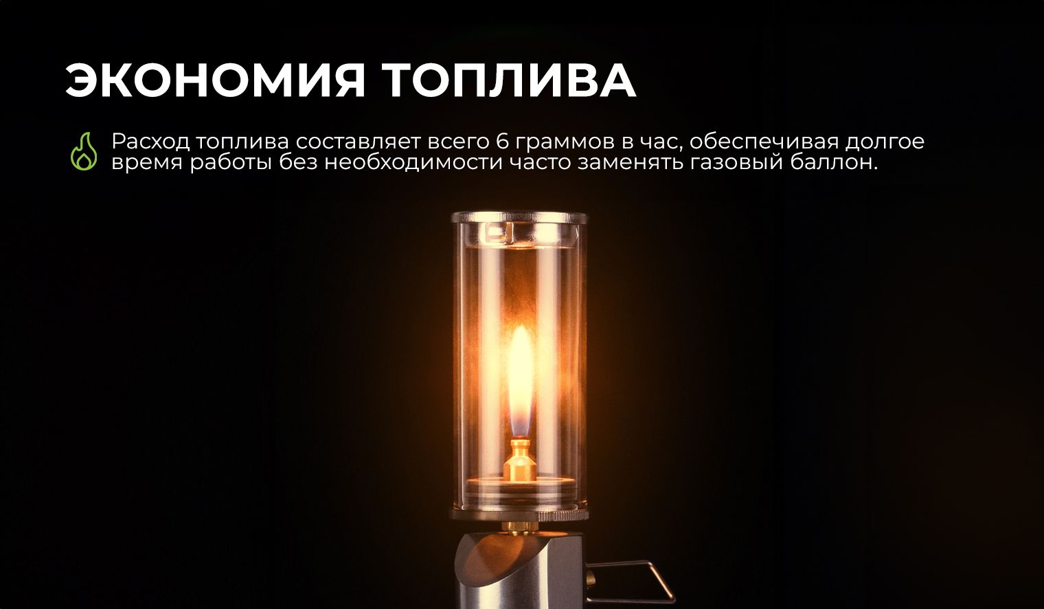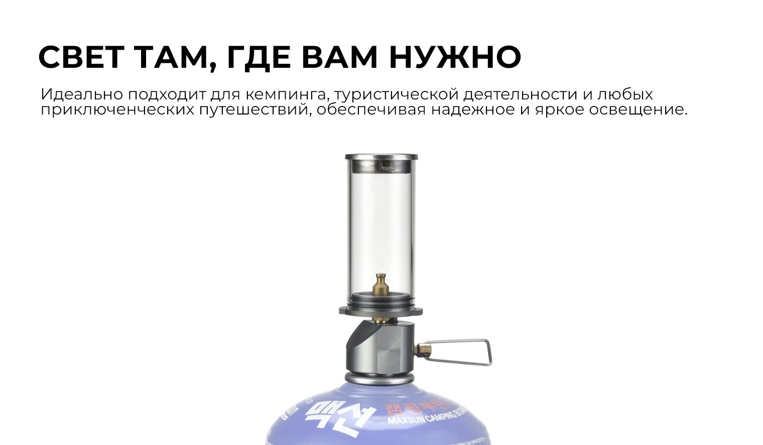 Лампа для кемпинга, туристической деятельности. В качестве топлива применяется газ бутан. Прочная и надёжная лампа имеет габариты: 39*34*103 миллиметра.