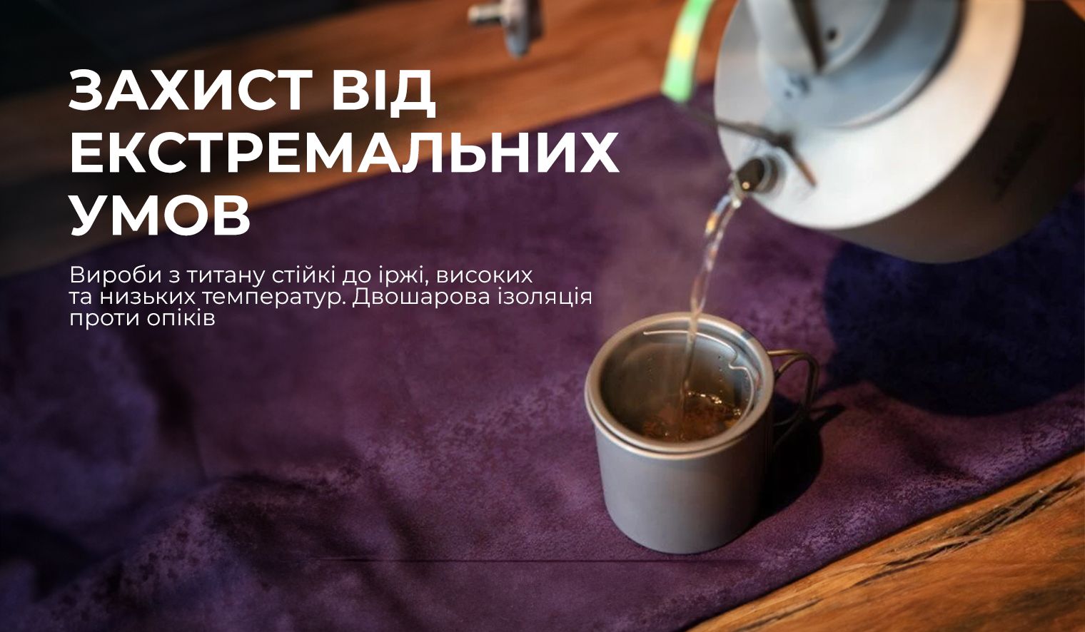 Титан, который является материалом для изготовления, представляет собой весьма лёгкий и крепкий металл, в сравнении со сталью. Такая посуда для туризма хорошо защищена от ржавчины, разрушающего воздействия кислот и щелочей. Кроме того, изделия устойчивы к экстремально низким и высоким температурам. Эффективная теплопередача. Экологичность и гигиеничность – изделия отличаются высоким качеством.