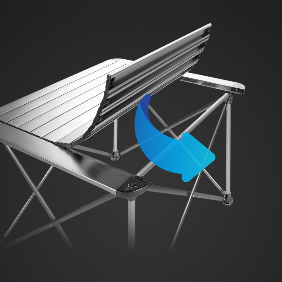 Опис складаного столу BRS-Z32: Стіл BRS-Z32 призначений для використання на відкритому повітрі та дозволяє з комфортом облаштувати місце для приймання їжі на численну групу людей. Модель складається з двох частин: каркасу та стільниці. Обидві мають складану конструкцію та виготовлені з легкого алюмінієвого сплаву, що не піддається іржавінню та витримує інтенсивні механічні навантаження, включаючи падіння з висоти та вплив людської ваги.