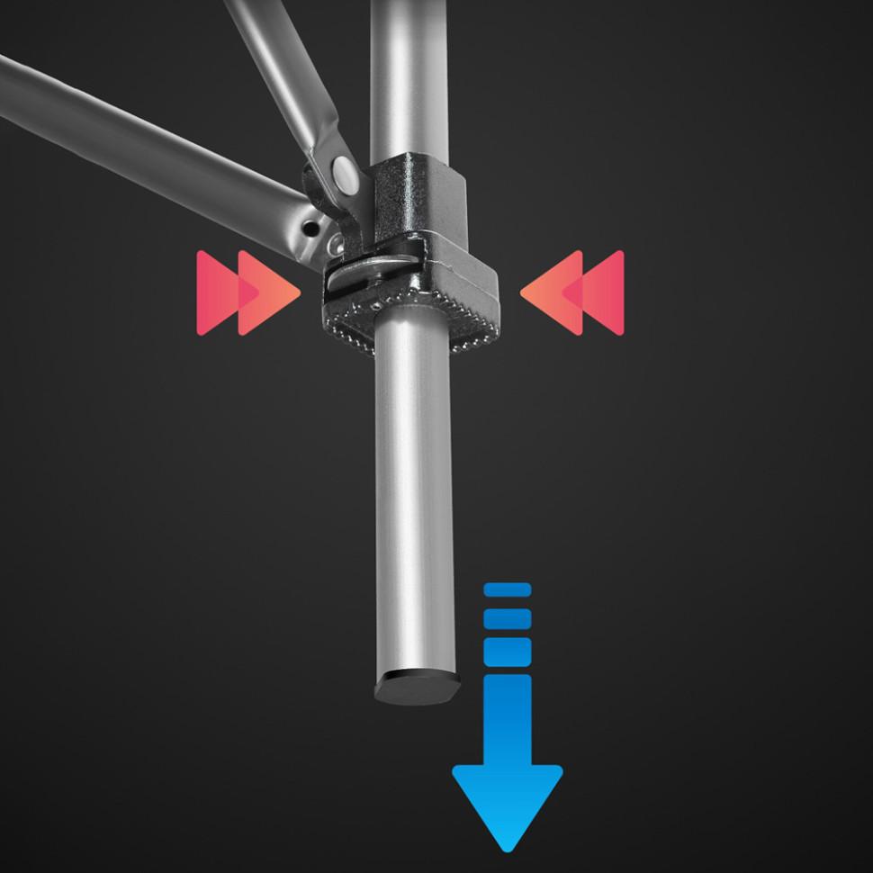 Каркас складається із шести ніжок, які з'єднуються за допомогою регульованих кронштейнів із автоматичним запірним механізмом. Одна з особливостей моделі — можливість змінювати висоту кожної ніжки окремо в межах від 47 до 77 сантиметрів. Таким чином, користувач може встановити стіл на поверхню з будь-яким рельєфом і уникнути хитання конструкції.
