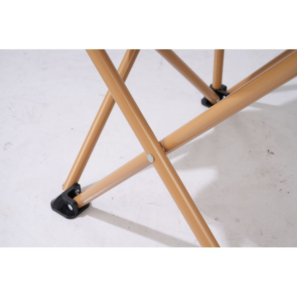 Складану модель можна брати з собою на дачу, риболовлю, пікнік чи кемпінг. Розміри у встановленому положенні 36 х 36 х 65 см та відсутність підлокітників дозволяють розташовуватися на стільці у будь-якій зручній позі, щоб максимально розслабитись після насиченого дня. Додаткову зручність забезпечують нековзні насадки на ніжках, які підвищують стійкість конструкції у разі встановленні на поверхні різного типу, як пісок чи хисткий ґрунт.